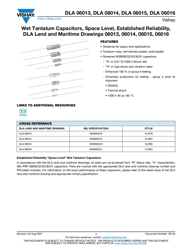 DLA 06013 Wet Tantalum Capacitors, Space Level, Established Reliability, DLA Land and...