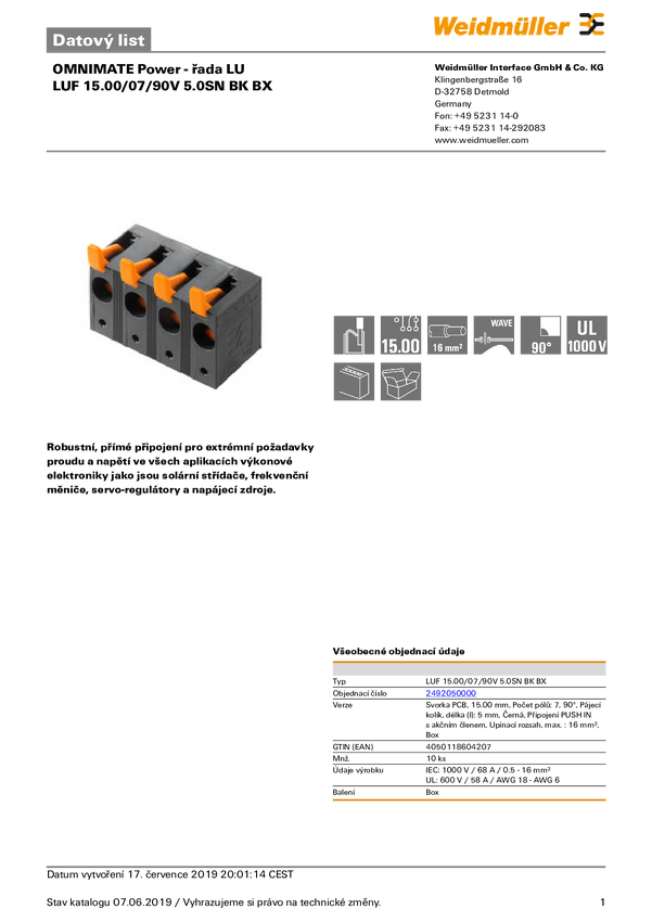 2492050000 Weidmüller 2492050000 Zaciski śrubowe 16 mm² Ilość styków 7 czarny 10 szt.