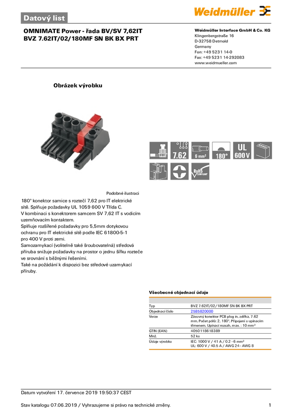 2585820000 Weidmüller 2585820000 Złącze męskie PCB Łączna ilość styków 2 52 szt.