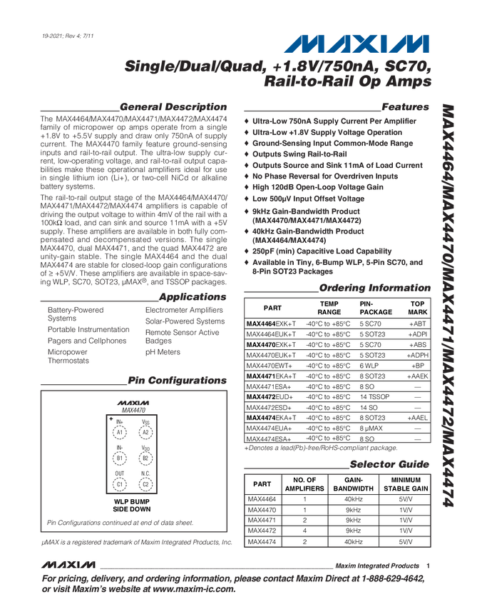 MAX4464, MAX4474, MAX4470, MAX4472