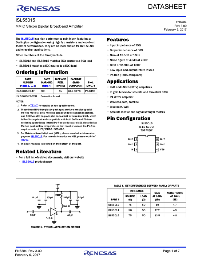 ISL55015IEZ-EVAL MMIC Silicon Bipolar Broadband Amplifier Evaluation Board
