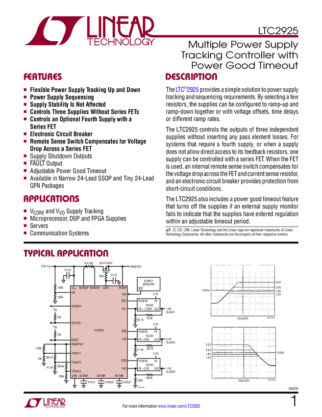 LTC2925 Multiple Power Supply Tracking Controller with Power Good Timeout
