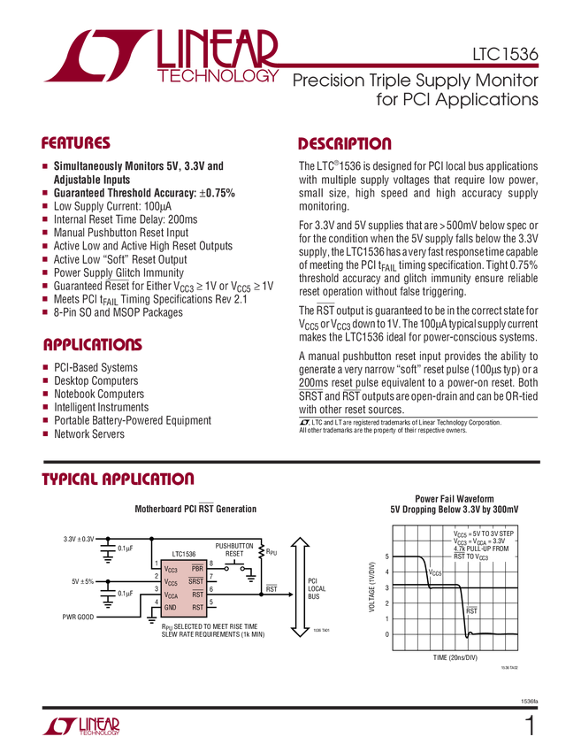 LTC1536 Precision Triple Supply Monitor for PCI Applications