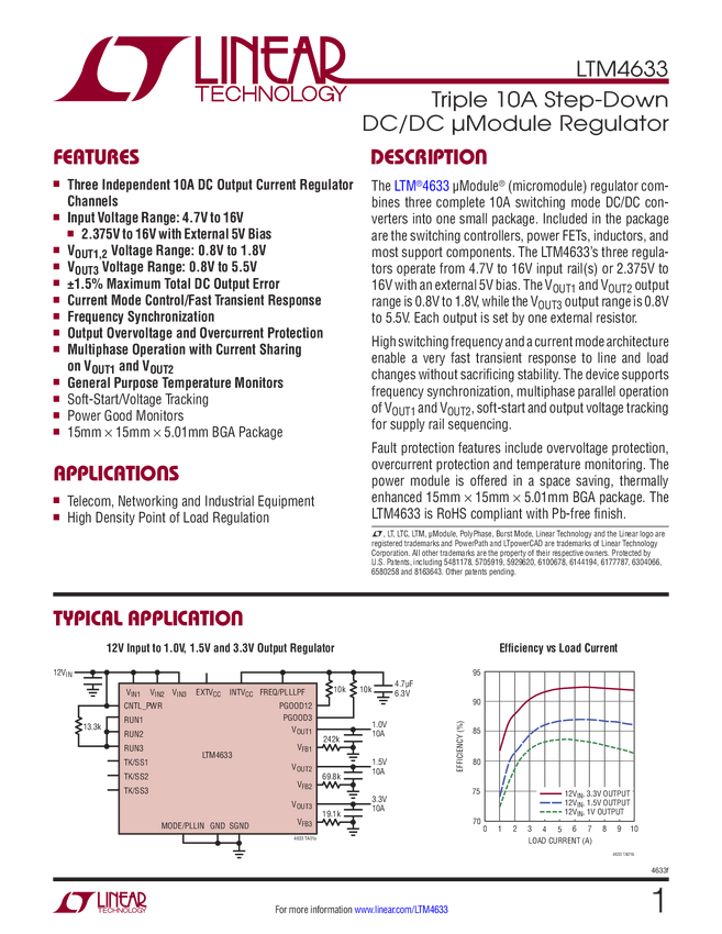 LTM4633 Triple 10A Step-Down DC/DC μModule (Power Module) Regulator