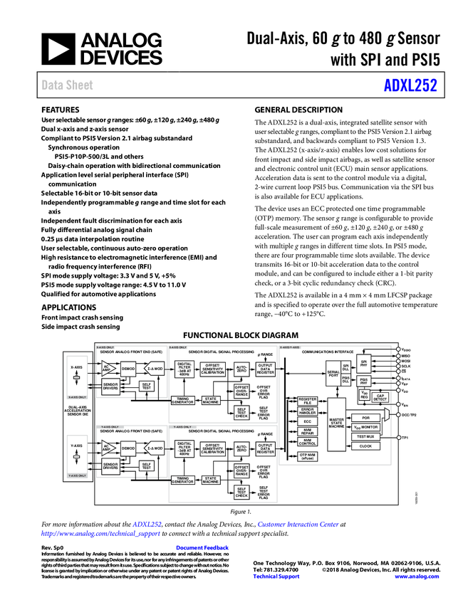 ADXL252 Dual-Axis, 60 to 480 Sensor with SPI and PSI5