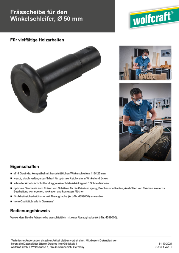 Frez tarczowy Wolfcraft 4387000, 50 mm , 1 szt.