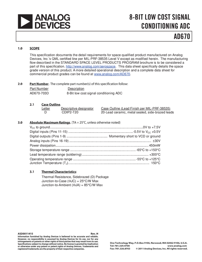 AD670S Aerospace 8-Bit Low Cost Signal Conditioning Single Supply ADC