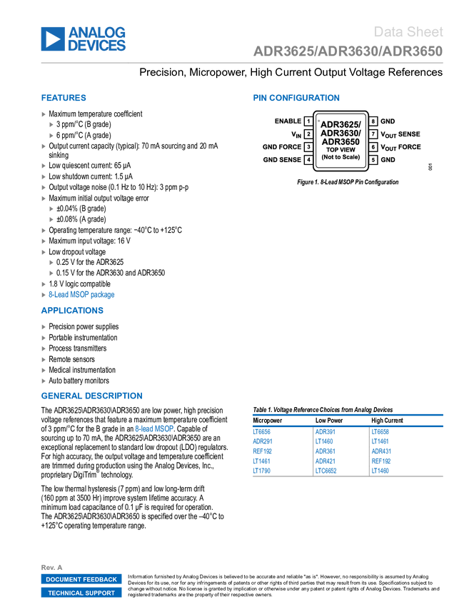 ADR3630 Precision, Micropower, High Current Output Voltage Reference