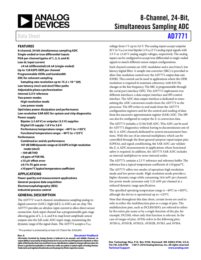 AD7771 8-Channel, 24-Bit, 128 kSPS Simultaneous Sampling ADC