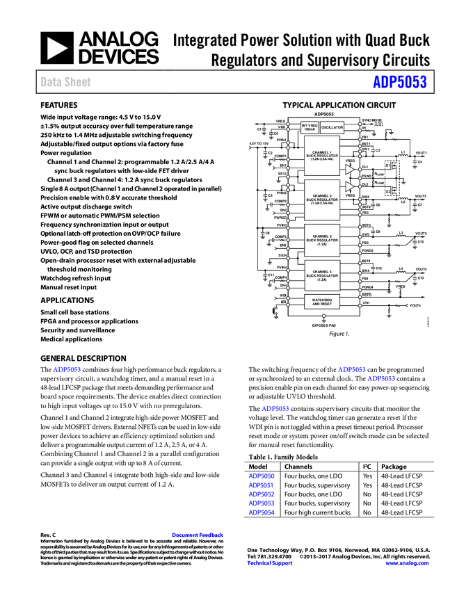 ADP5053 Integrated Power Solution with Quad Buck Regulators and Supervisory Circuit...