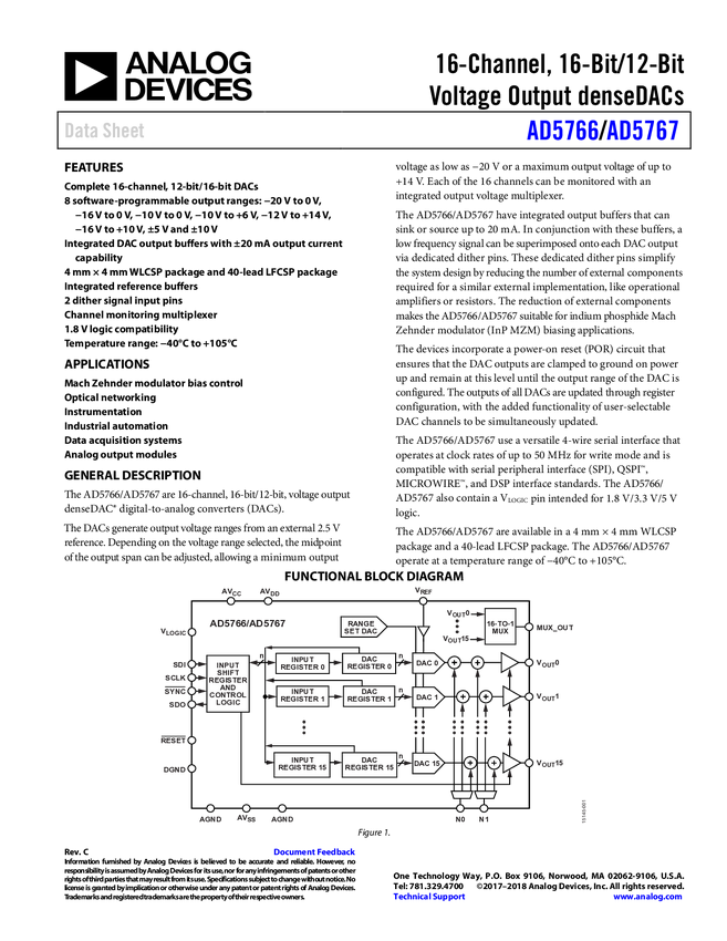AD5766 16-Channel, 12-Bit Voltage Output denseDAC