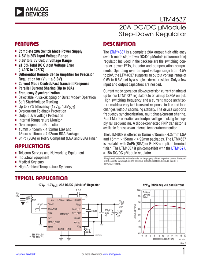 LTM4637 20A DC/DC μModule (Power Module) Step-Down Regulator