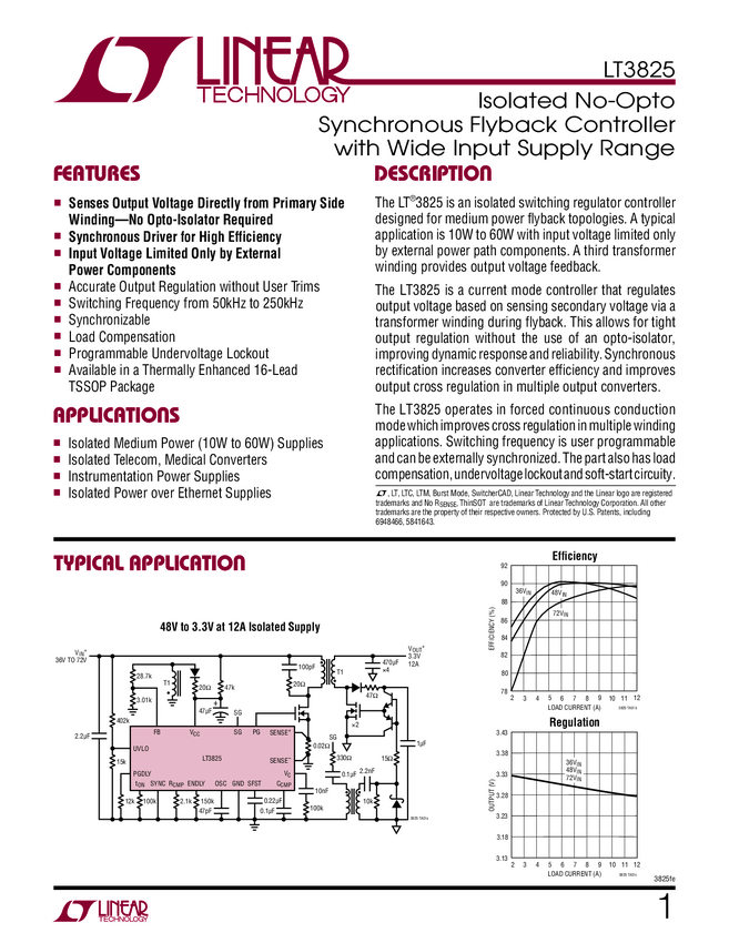 LT3825 Isolated No-Opto Synchronous Flyback Controller with Wide Input Supply Rang...