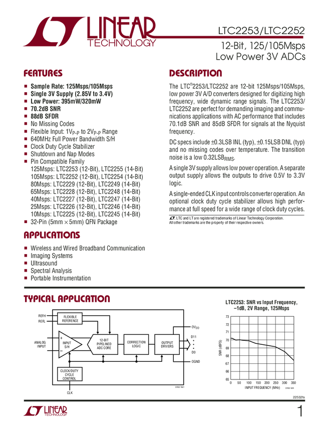 LTC2253 12-Bit, 105Msps Low Power 3V ADCs
