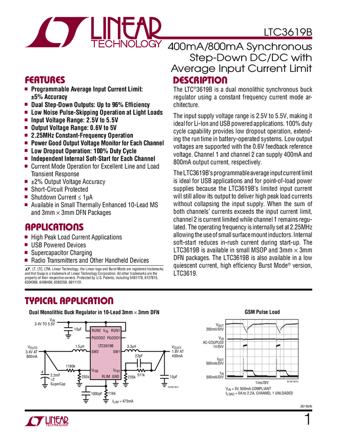 LTC3619B 400mA/800mA Synchronous Step-Down DC/DC with Average Input Current Limit