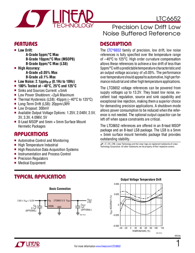 LTC6652 Precision Low Drift Low Noise Buffered Reference