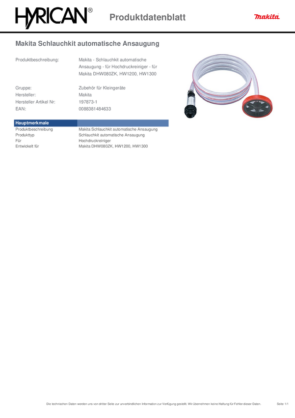 Makita Sonstiges Zubehör/Ersatzteil Haushaltsgeräte Wąż ssący 197873-1 1 szt.