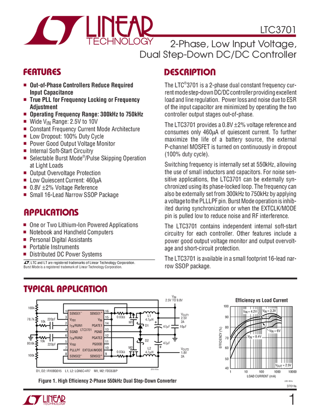 LTC3701 2-Phase, Low Input Voltage, Dual Step-Down DC/DC Controller