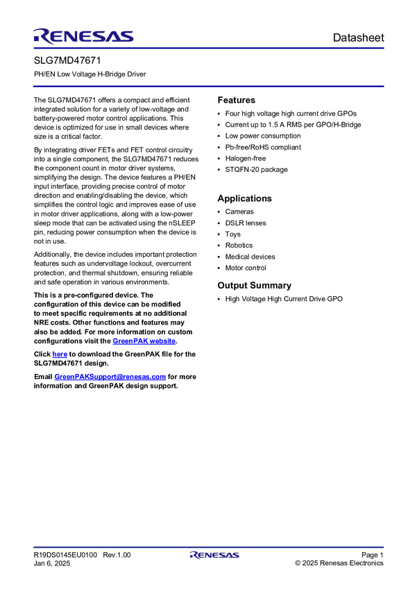 SLG7MD47671 Phase/Enable Low-Voltage H-Bridge Driver