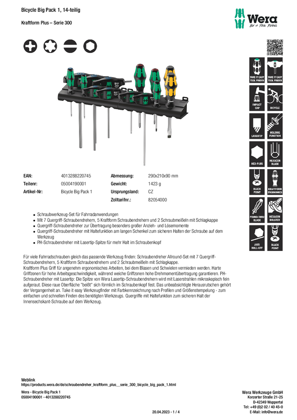 05004190001 Zestaw wkrętaków Wera Bicycle Big-Pack 1 05004190001
