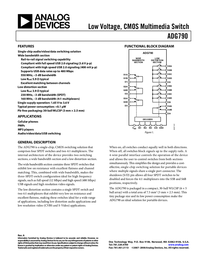 ADG790 Low Voltage, CMOS Multimedia Switch