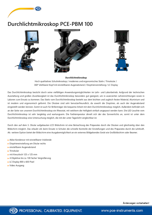 PCE Instruments PCE-PBM 100 Mikroskop cyfrowy