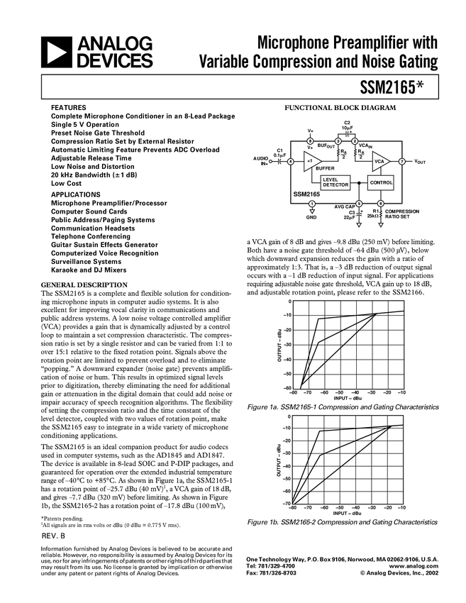 SSM2165 Complete Microphone Conditioner in an 8-Lead Package with Variable Compres...