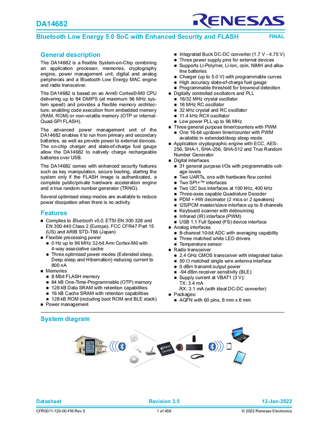 DA14682 SmartBond Bluetooth Low Energy 5.0 SoC with Enhanced Security and Flash