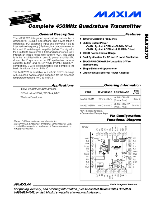 MAX2370 Complete 450MHz Quadrature Transmitter