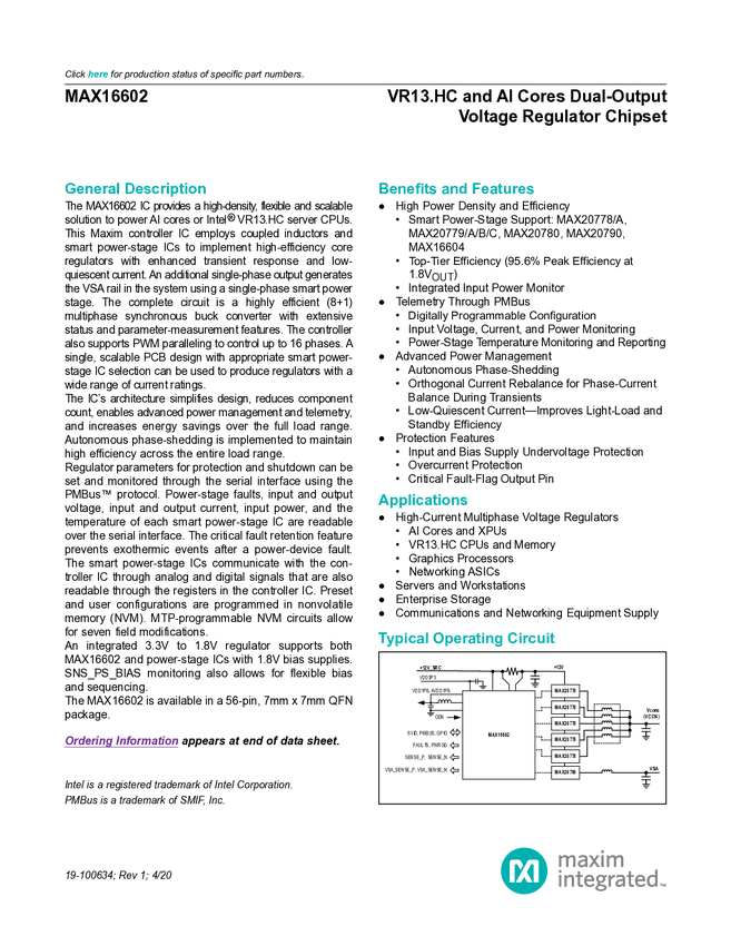 MAX16602 VR13.HC and AI Cores Dual-Output Voltage Regulator Chipset