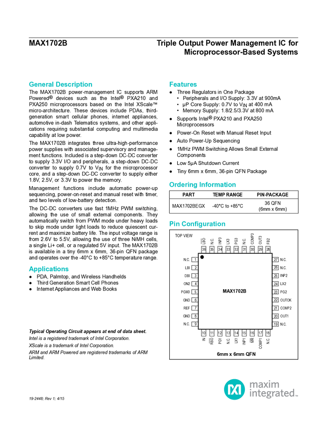 MAX1702B Triple-Output Power-Management IC for Microprocessor-Based Systems