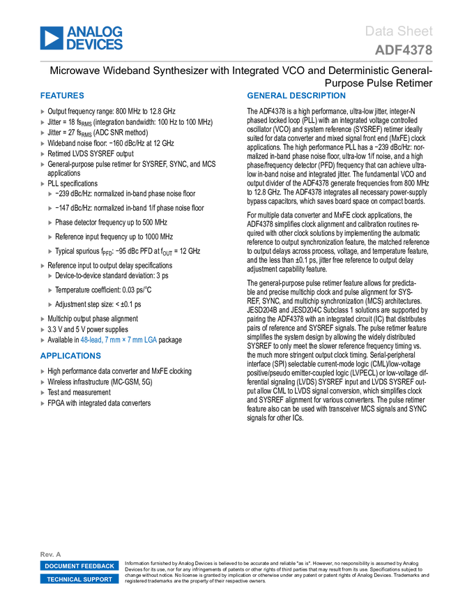 ADF4378 Microwave Wideband Synthesizer with Integrated VCO and Deterministic Genera...