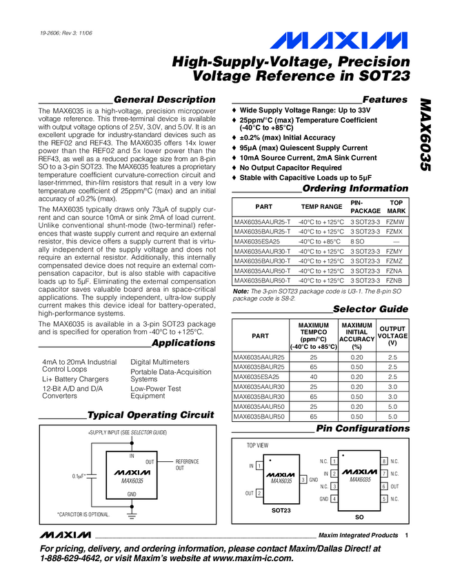 MAX6035 High-Supply-Voltage, Precision Voltage Reference in SOT23