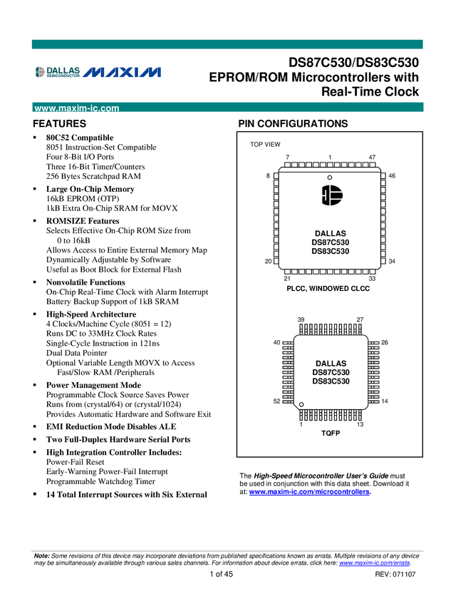 DS83C530 EPROM Microcontrollers with Real-Time Clock