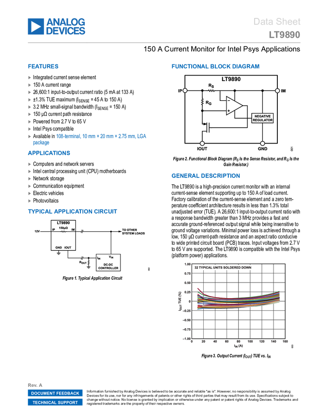 LT9890 150 A Current Monitor for Intel Psys Applications