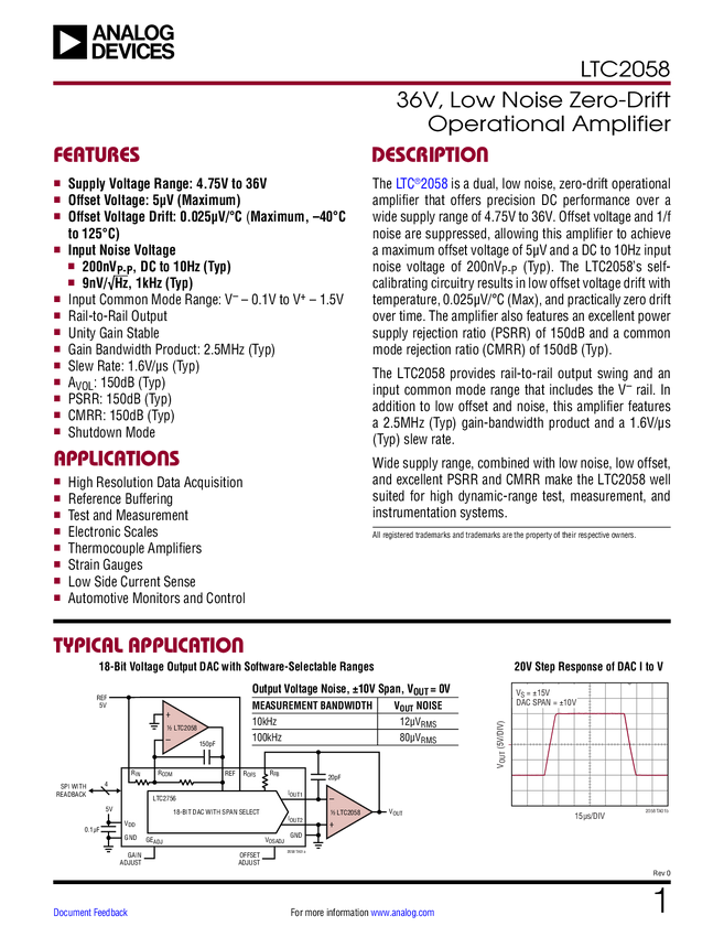 LTC2058 36V, Low Noise Zero-Drift Operational Amplifier