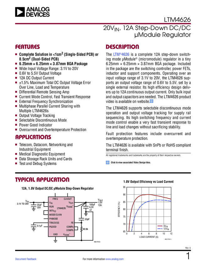 LTM4626 20V, 12A Step-Down DC/DC µModule Regulator