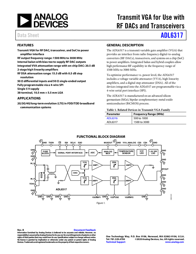 ADL6317 Transmit VGA for Use with RF DACs and Transceivers