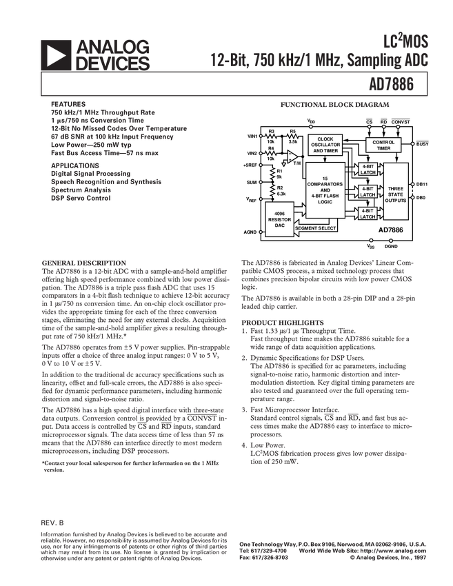 AD7886 LCMOS 12-Bit, 750 kHz/1 MH, Sampling ADC