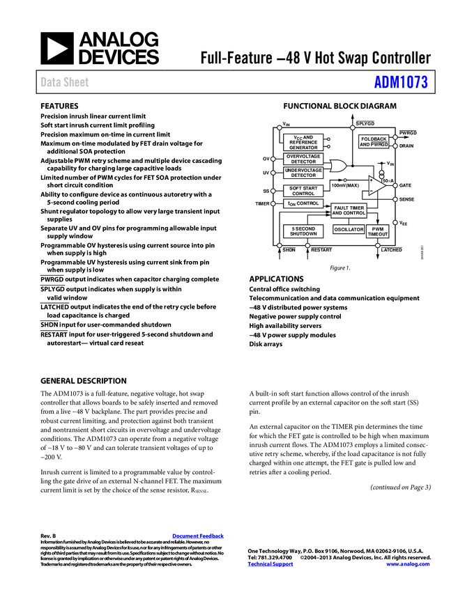 ADM1073 -48 V Full Feature Hot Swap Controller