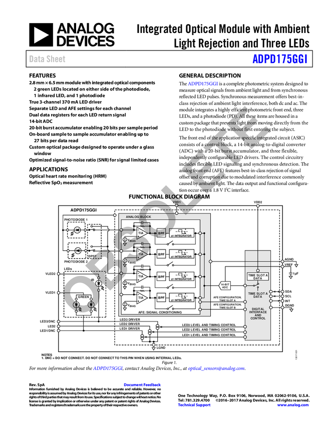 ADPD175GGI Integrated Optical Module with Ambient Light Rejection and Three LEDs