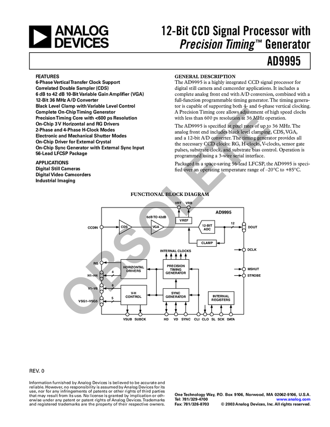 AD9995 12-Bit CCD Signal Processor with ™ Generator
