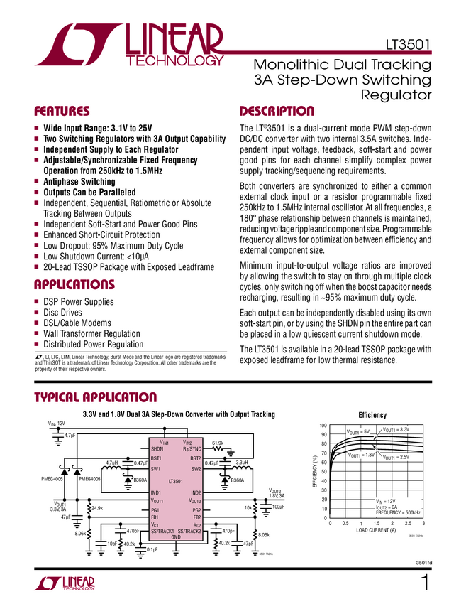 LT3501 Monolithic Dual Tracking 3A Step-Down Switching Regulator