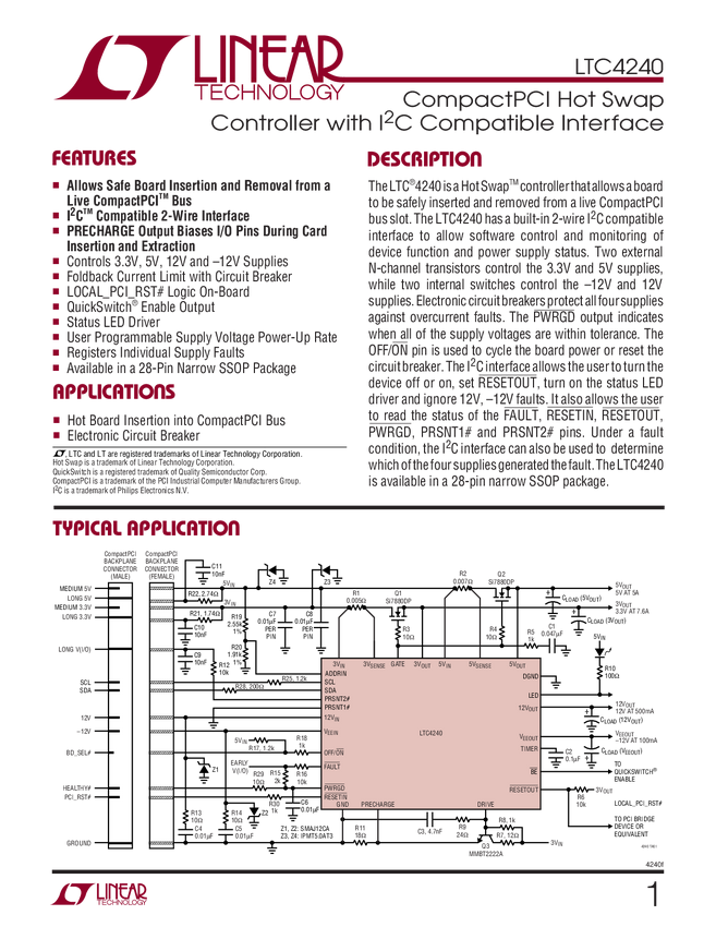 LTC4240 CompactPCI Hot Swap Controller with IC Compatible Interface