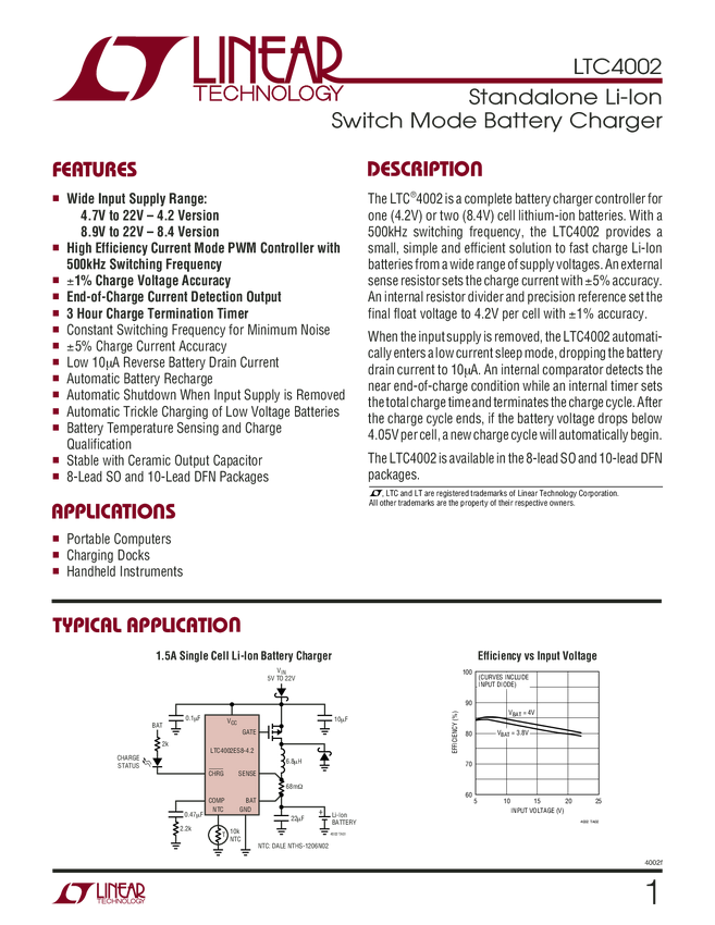 LTC4002 Standalone Li-Ion Switch Mode Battery Charger