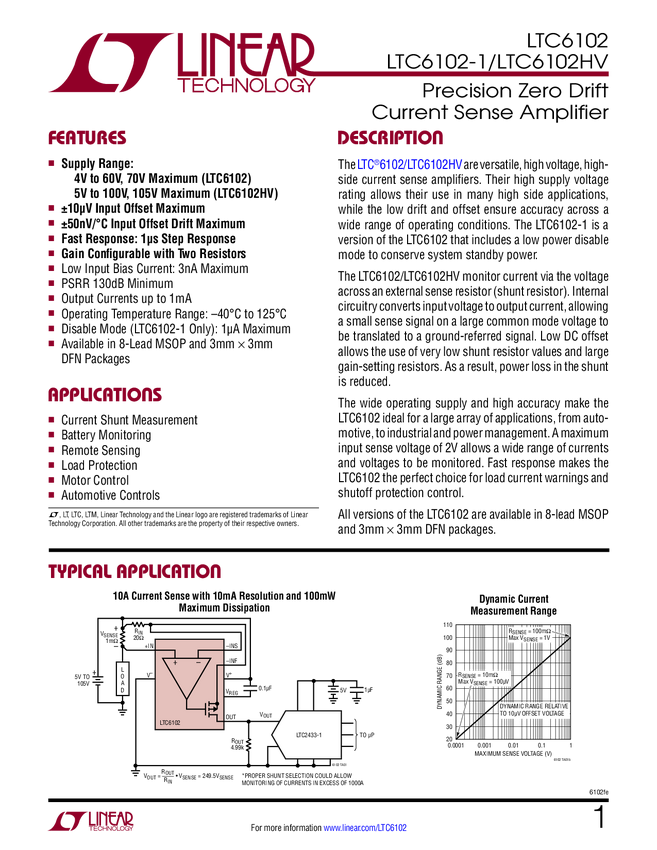 LTC6102 Precision Zero Drift Current Sense Amplifier