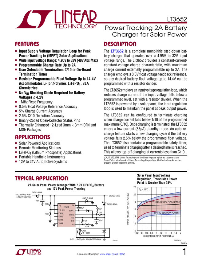 LT3652 Power Tracking 2A Battery Charger for Solar Power