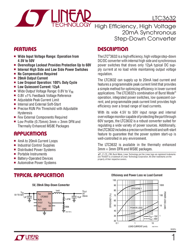 LTC3632 High Efficiency, High Voltage 20mA Synchronous Step-Down Converter