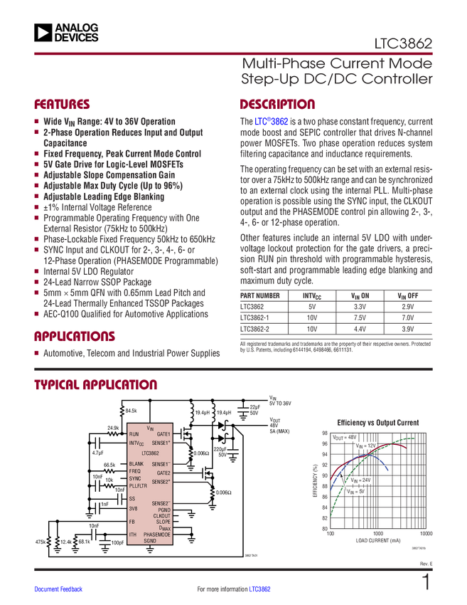 LTC3862 Multi-Phase Current Mode Step-Up DC/DC Controller