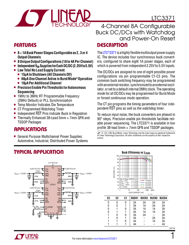 LTC3371 4-Channel 8A Configurable Buck DC/DCs with Watchdog and Power-On Reset